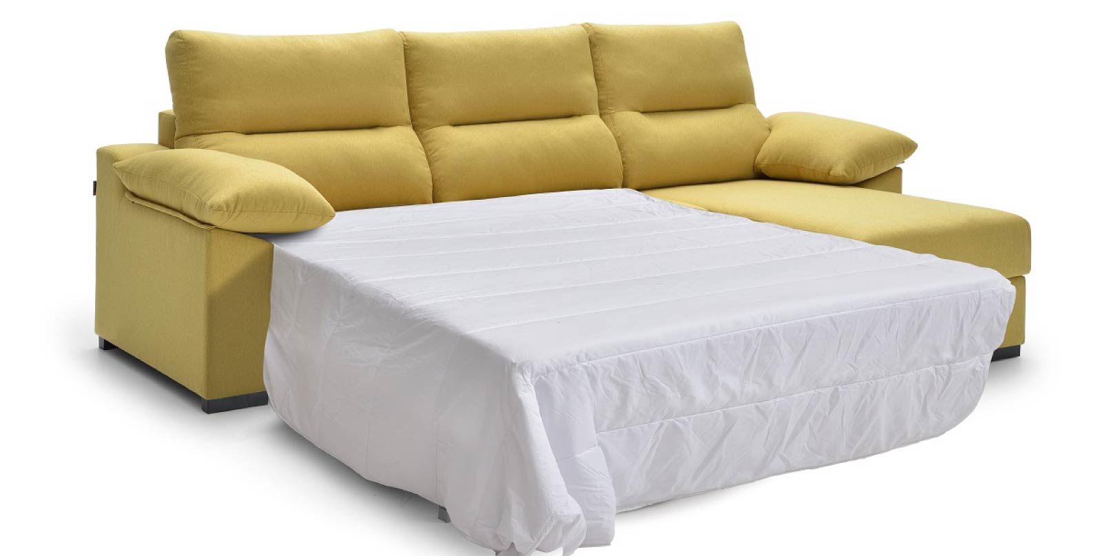 Este tipo de chaise longue nos permite tener una cama en cuestión de segundos. Se trata de un sofá con una parte interior móvil que encaja con el reposapiés. El resultado es una cama cómoda y de grandes dimensiones para cualquier eventualidad.